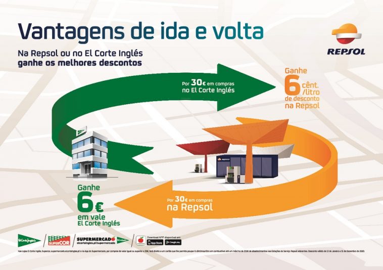 Os clientes que realizem compras de valor igual ou superior a 30 euros no El Corte Inglés, incluindo na loja online e Supercor, através de https://www.elcorteingles.pt/, de 16 de janeiro a 31 de dezembro, recebem um cartão que lhes permite obter um desconto de seis cêntimos por cada litro de combustível em estações de serviço Repsol, até 250 euros.