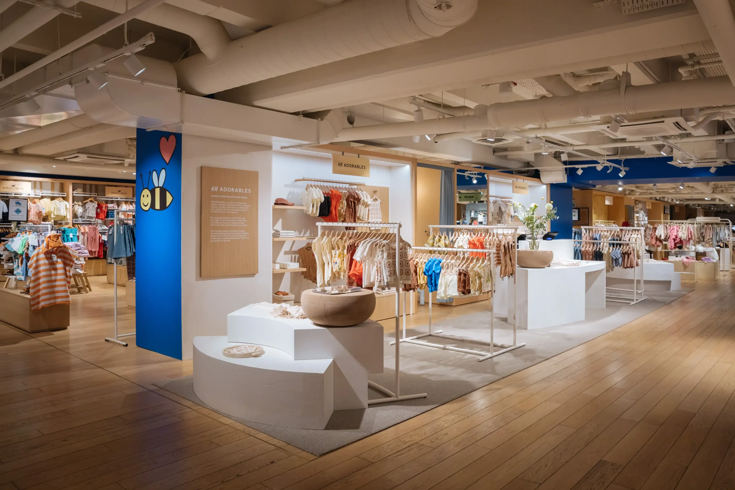 Lançada mundialmente em outubro passado, a H&M Adorables é uma coleção de vestuário e acessórios para crianças cuidadosamente selecionada, que privilegia o estilo, a qualidade e a durabilidade. A loja das Galeries Lafayette Haussmann, em Paris, apresentará uma seleção de peças sazonais para crianças com idades compreendidas entre um mês e 10 anos, com preços que variam entre 12,99 e 49,99 euros. O corner também terá roupas para recém-nascidos e peças básicas para bebés.