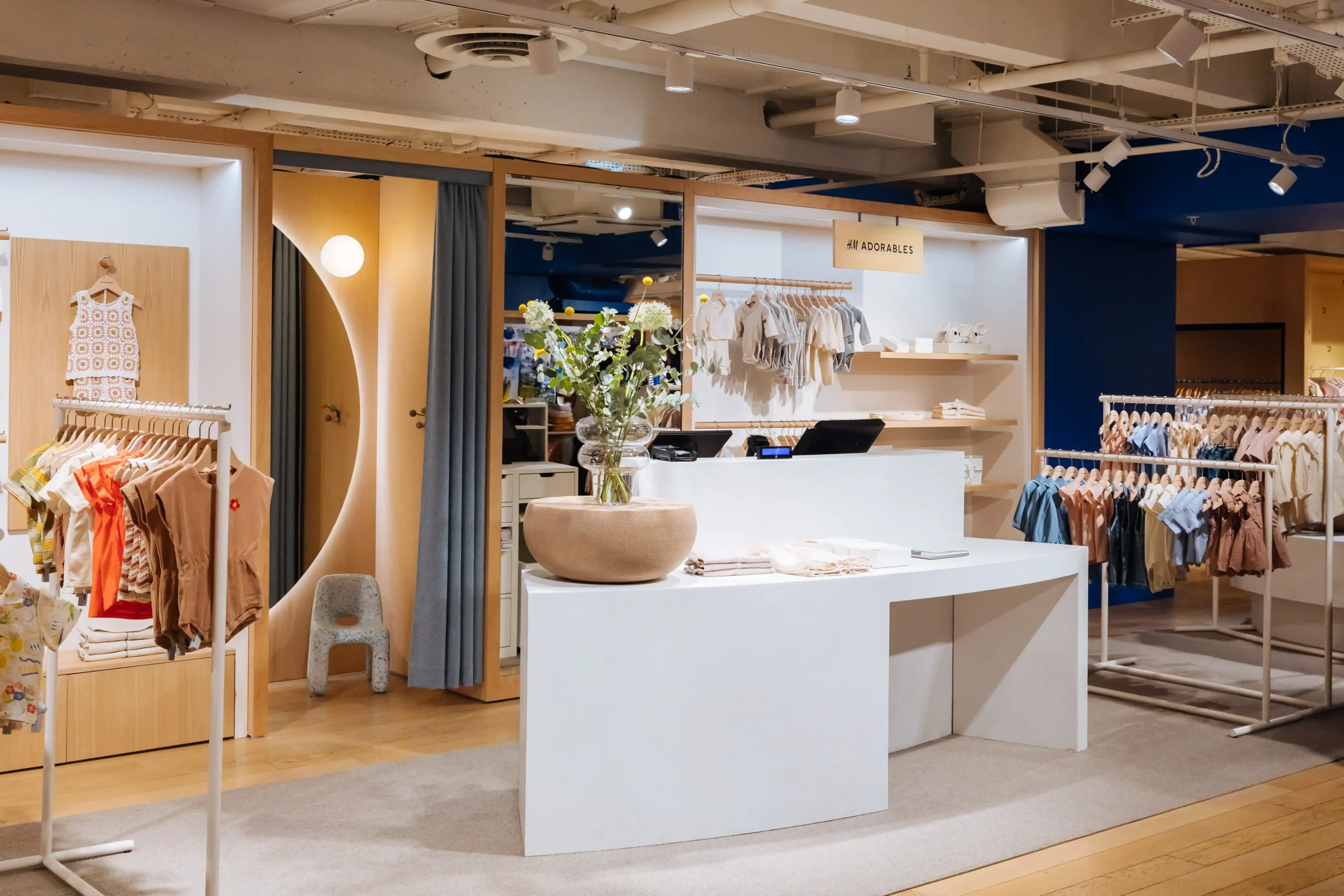 A marca refere que o corner apresenta uma variedade de matérias-primas de alta qualidade, duradouras e elegantes. Combinando madeira, pedra e têxteis, este ambiente irá realçar as coleções. O espaço está dividido em duas secções dedicadas, respetivamente, à roupa de bebé e ao guarda-roupa de criança.